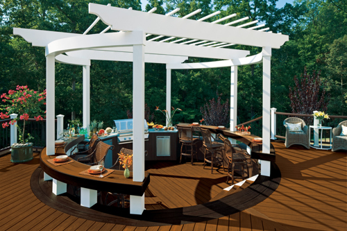 The size of the kitchen area will help determine the shape of the kitchen, and how each part relates to its surroundings. Do you want your outdoor kitchen to take up a small portion of your deck and still have room for a lounge area or other type of section? Or do you like the idea of a sprawling outdoor kitchen that spans the entirety of your deck, made with entertaining and cooking for your guests in mind?